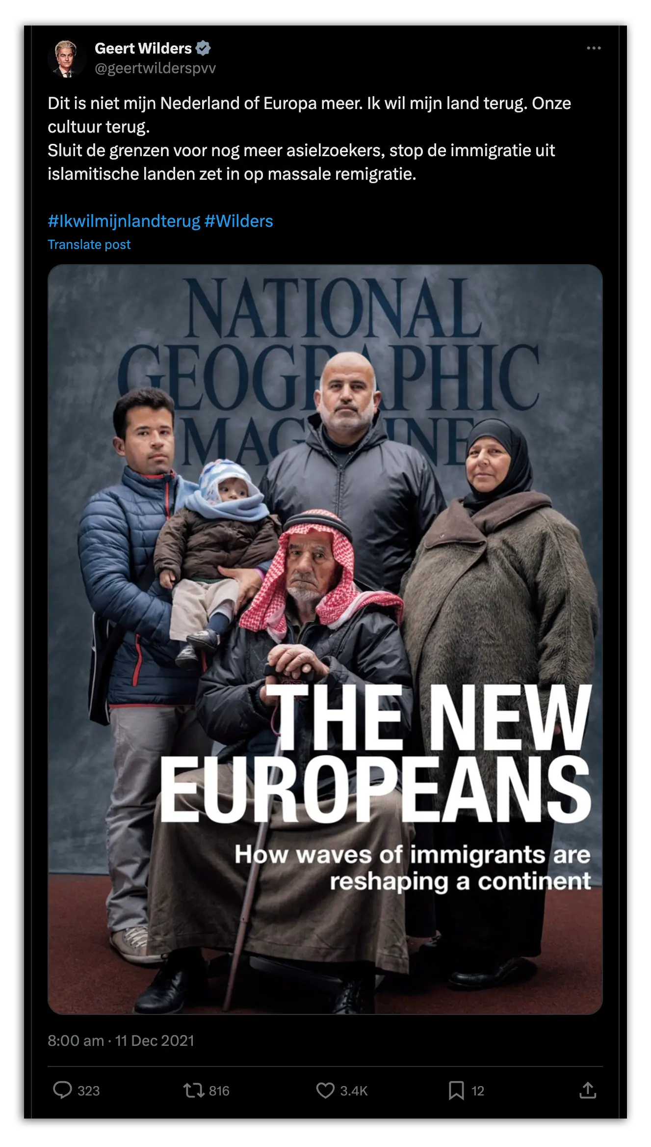 Drie jaar eerder was dat anders. In januari 2021 pleitte de PVV nog voor een speciaal ministerie voor remigratie. En al in 2013 schreef Wilders op X dat hij meer remigratie wilde zien. Die boodschap herhaalde hij op dat medium wel vaker. Zo plaatste hij in december 2021 een afbeelding van een groepje mensen, ogenschijnlijk uit het Midden-Oosten, met de oproep in te zetten op massale remigratie.